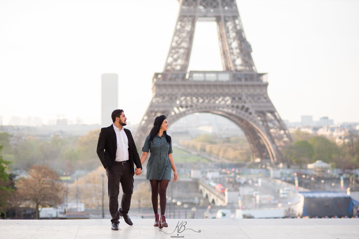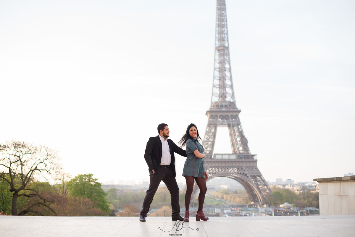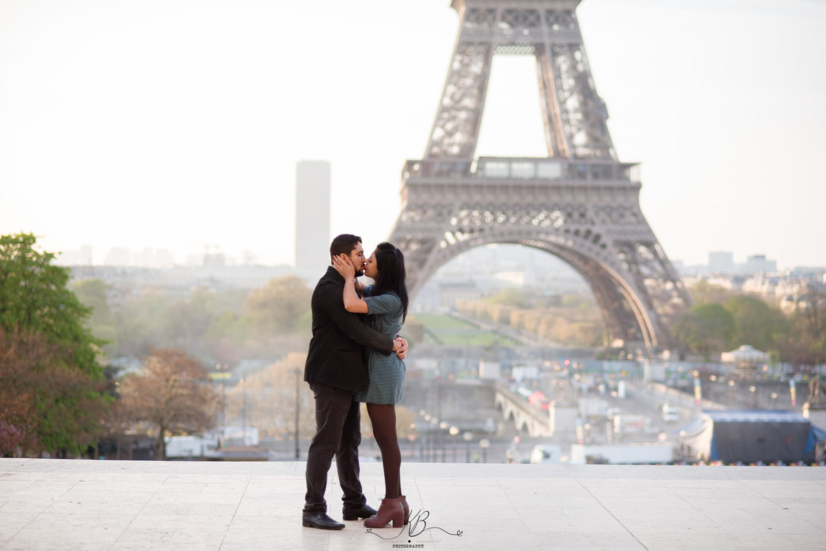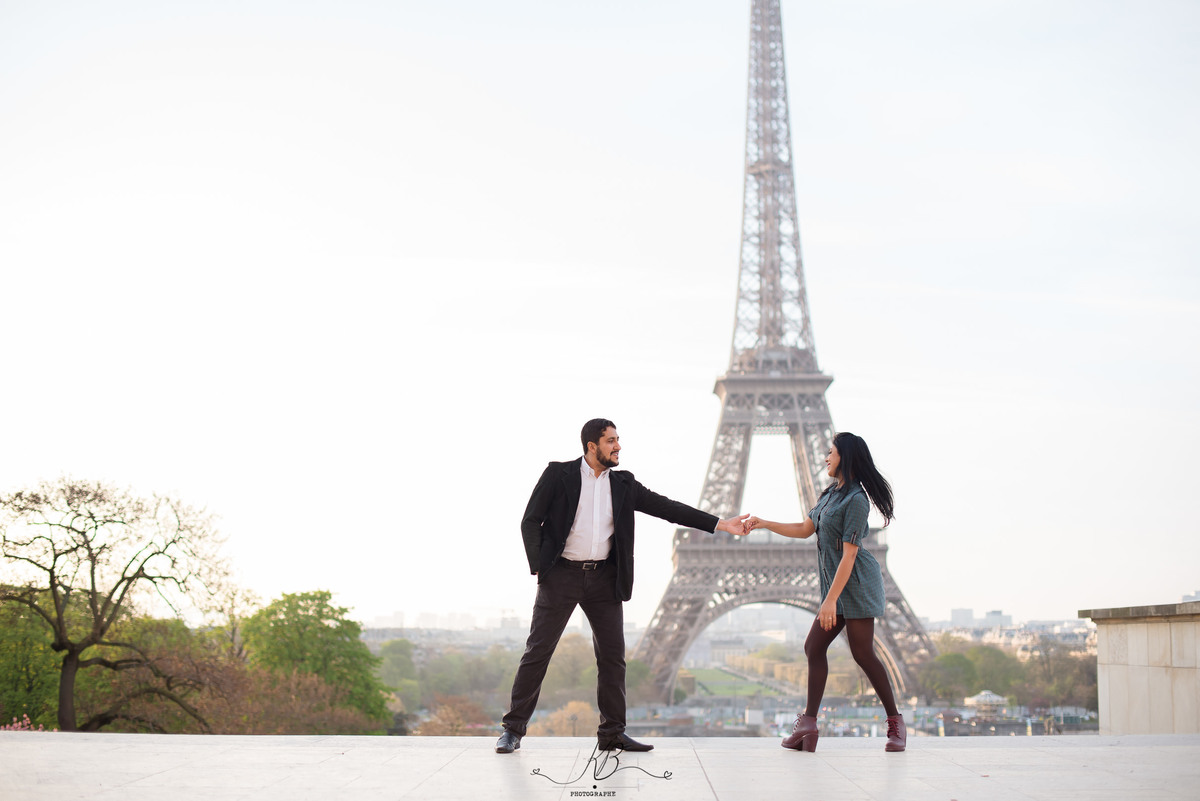 Ela entrou em contato comigo pelo Instagram, em seguida começamos a conversar por e-mail; ela parecia muito empolgada e fizemos uma reserva para uma sexta-feria, porém, eles tiveram um imprevisto com o voo prorrogando e só chegaram a Paris no final do dia reservado para as fotos. Sem problemas. Remarcamos para o próximo dia disponível na minha agenda e como as sessões de fotos acontecem cedinho, não atrapalha a programação turística de quem quer visitar Paris.