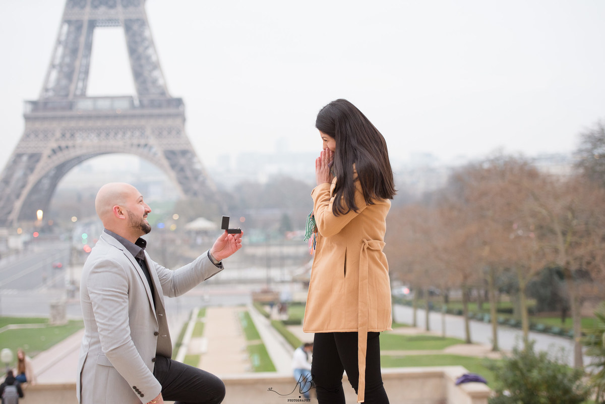 Eu amo fotografar casais em Paris; afinal a capital francesa combina com amor! Agora quando no meio da sessão de fotos do casal tem um pedido de casamento, aí é emoção pura. Vibro e emociono-me muito. Assim aconteceu na sessão de fotos da Mariana e Rodolfo.
